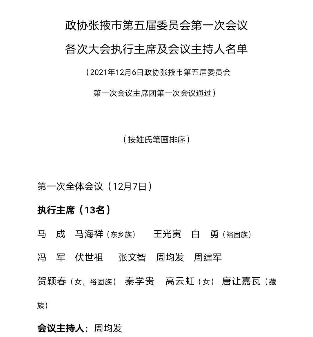 【聚焦張掖兩會】政協張掖市第五屆委員會第一次會議相關名單