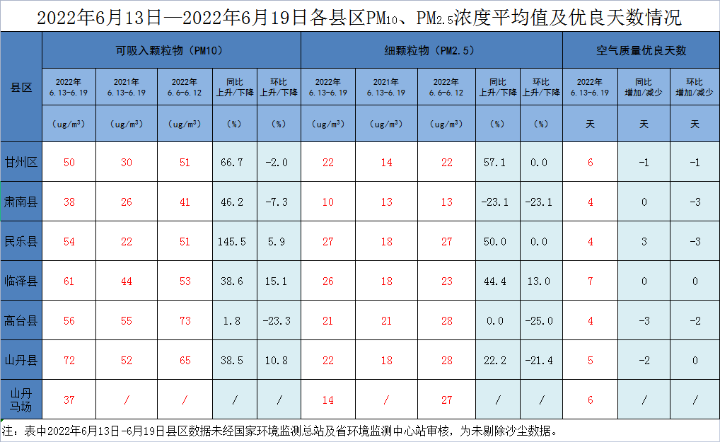 張掖市各縣區(qū)空氣質(zhì)量周報
