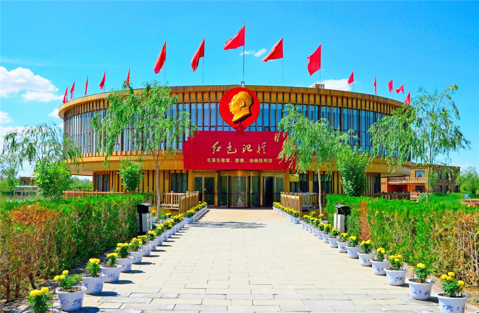紅色記憶——毛澤東像章、塑像、油畫陳列館,位于國家4A級旅游景區——甘肅省高臺縣大湖灣文化旅游風景區核心區域,距高臺縣城5公里,為二層圓形建筑,建筑面積2348.77平方米,陳展面積1800多平方米。該館由甘肅西部紅色文化旅游有限責任公司與該縣一位紅色收藏家共同投資打造。將近5萬枚毛澤東像章、近百尊毛澤東塑像、70多幅絲織畫、油畫以及其他的紅色藏品,按照藏品所表現的主題內容,以毛澤東同志領導中國共產黨及中國人民所進行的偉大革命斗爭為主線,按照時間順序,精心制作的一個紅色教育展覽;是國內首家以毛澤東像章所表現的重大歷史事件濃縮中國共產黨歷史進行中共黨史和革命傳統教育的展覽。
