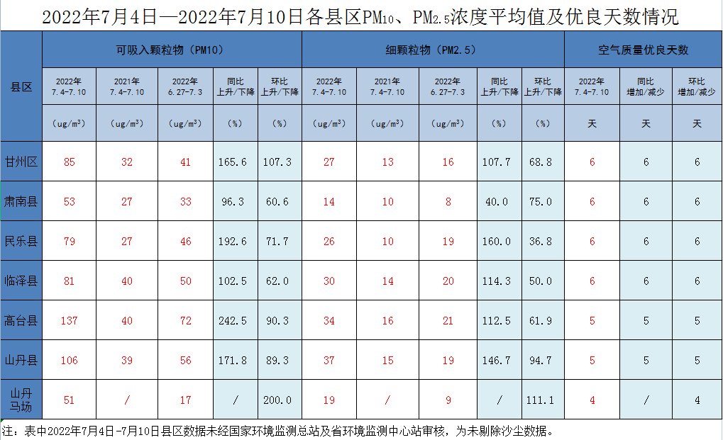張掖市各縣區(qū)空氣質(zhì)量周報(bào)
