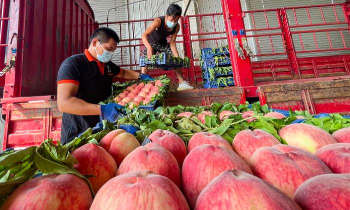 8月12日上午,記者在嘉信農(nóng)貿(mào)市場(chǎng)看到,蔬菜專供貨車井然有序停放,工作人員正在裝載蔬菜、水果、米面、糧油等生活物資,挑選、打包、裝載、運(yùn)送,每個(gè)環(huán)節(jié)嚴(yán)謹(jǐn)且有條不紊。