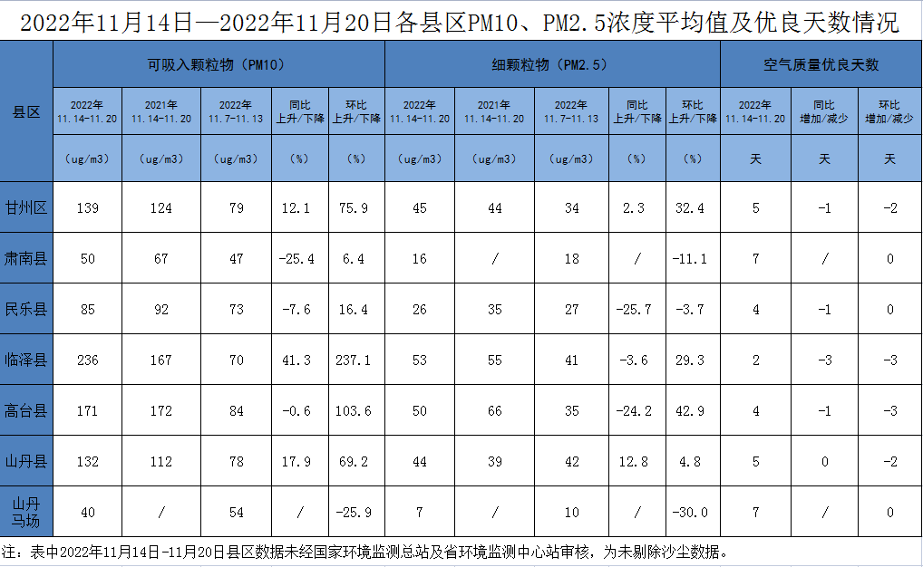 張掖市各縣區(qū)空氣質(zhì)量周報