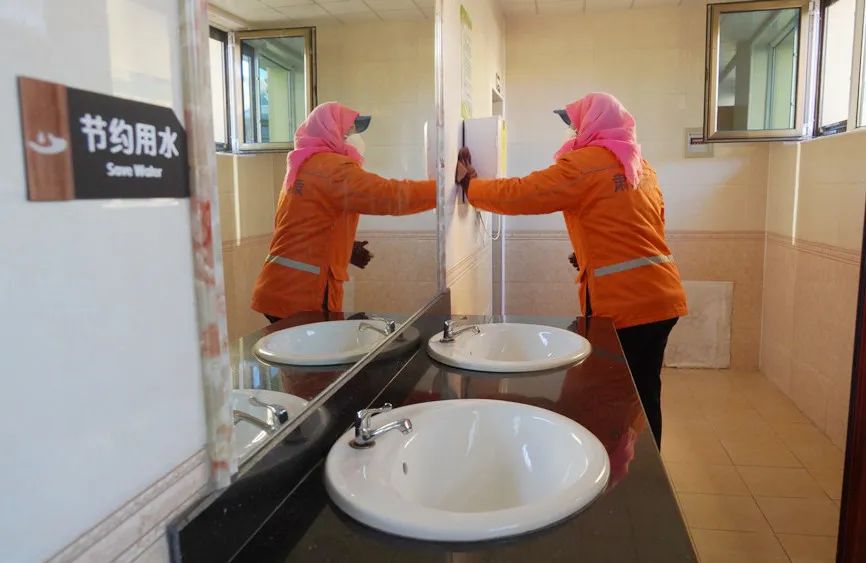 在公共衛(wèi)生間內(nèi),環(huán)衛(wèi)工人也加強(qiáng)日常管護(hù),加大保潔頻次,確保公廁干凈整潔無(wú)異味。