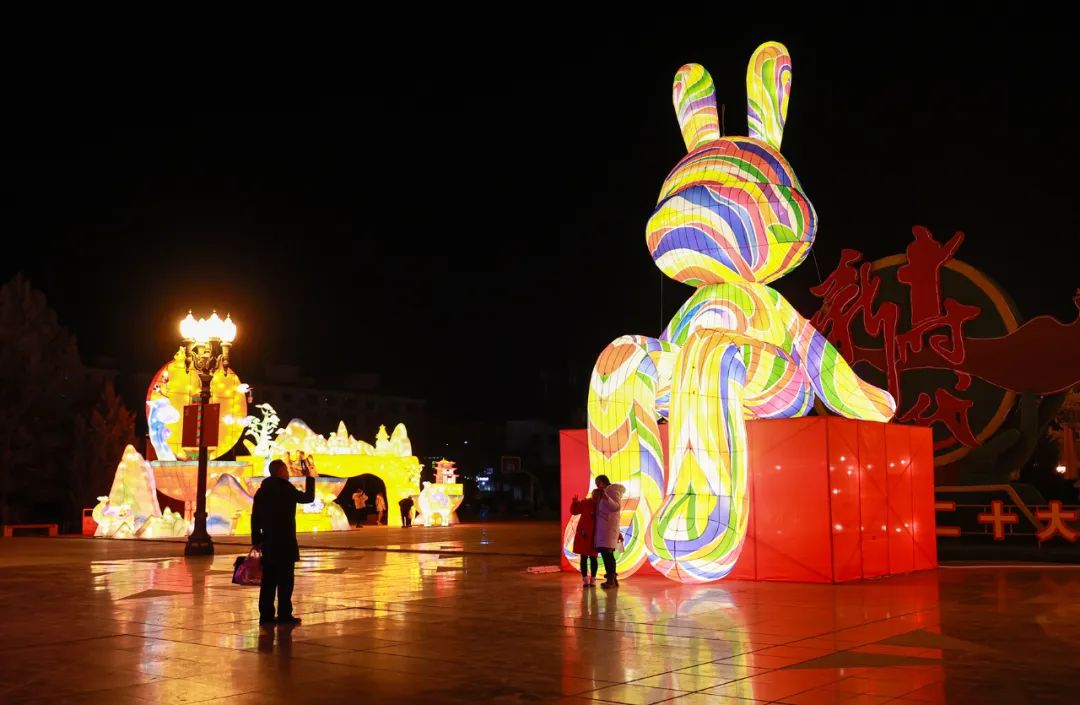 移步至甘州區中心廣場,記者看到中心位置擺放著一只巨型彩色兔子,其絢麗的色彩、憨態可掬的造型吸引無數市民拍照留念。“2023年是癸卯年(兔年),隨著元旦臨近,街上掛滿了彩燈,我趁著夜色出來逛逛街看看彩燈,感受下新年新氣象,相信明年一定是一個紅紅火火的新年。”市民許元志說。據甘州區市政公用事業管理局副局長唐鵬介紹,元旦、春節來臨之前,該局聯合區城投、交投等16家國有企業于11月中旬對城區街道進行亮化工程,主要對新老城區23條主干道路兩側樹木和綠籬帶架設彩燈,以燈景結合、色彩聯動的方式,表達對全市人民的美好祝愿,進一步展現文化甘州靚麗夜景,展示文明城市創建風貌。