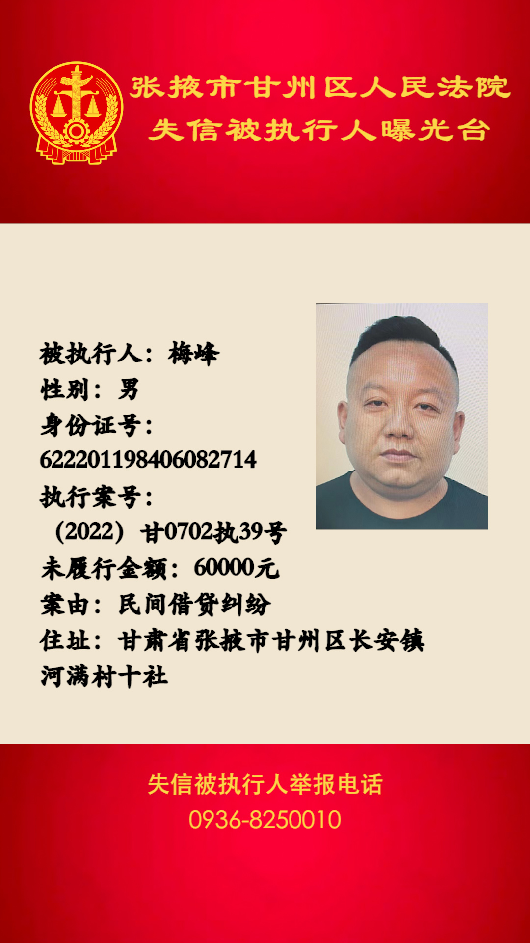 張掖市甘州區(qū)人民法院失信被執(zhí)行人曝光臺(tái)