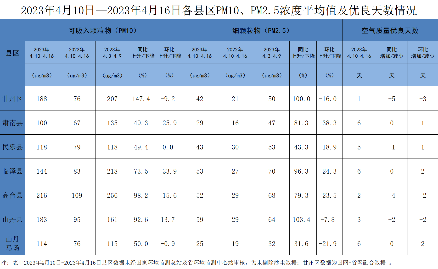 張掖市各縣區(qū)空氣質(zhì)量周報