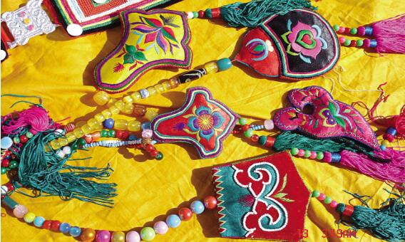 裕固族刺繡主要分布在祁連山北麓的肅南裕固族自治縣明花鄉、大河鄉、康樂鄉及皇城鎮的馬營、東灘、北灘。裕固族的刺繡工藝在民族工藝和審美情趣中隱喻著很深的文化內涵,充分體現了裕固族人追求美的心理需求。裕固族刺繡工藝就其色彩、花樣、用途而言千差萬別、千姿百態,既符合風俗習慣,審美心態,也是生活情趣的再現。裕固族刺繡是裕固族生產生活中一個非常重要的輔助性、裝飾性手工藝術,它在吸納了中國四大名繡和藏族、蒙古族等民間刺繡精華的基礎上,逐漸形成了自己獨特的風格和完整的藝術體系,具有濃郁的地方特色和民族氣息。其主要特點是內容豐富,多以人物、花草、鳥獸、傳統裝飾圖案及十二生肖等為主;構圖嚴謹,講究圖案的對稱和自然流暢;針法多樣并注重運用剪絨、打結、鎖邊、圈金、打眼等輔助工序;色彩艷麗明快,但又樸素大方,主要用于服飾裝飾、日常生活用品裝飾。裕固族刺繡藝術來源于他們的生活,來源于他們自身,與他們的物質生產生活方式有著密不可分的聯系。作為藝術品,既表現了藏傳佛教的宗教信仰,又具有西部游牧民族的特色,也具有裕固族獨特的文化元素,在中華民族文化寶庫中占有一定的地位。 2013年,裕固族刺繡被甘肅省人民政府列入第三批甘肅省非物質文化遺產保護名錄。