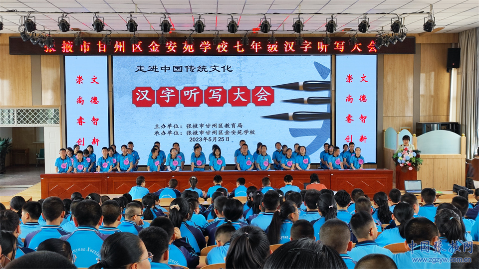 中國張掖網甘州訊 為了進一步豐富校園文化生活,弘揚中華漢字語言文化,促進規范用字、規范書寫,培養學生聽、讀、寫能力和對祖國語言文字的感情,扎實推動“三抓三促”行動向縱深發展,5月25日下午,甘州區金安苑學校舉行了主題為“正確書寫漢字,提高書寫水平”的漢字聽寫大會。