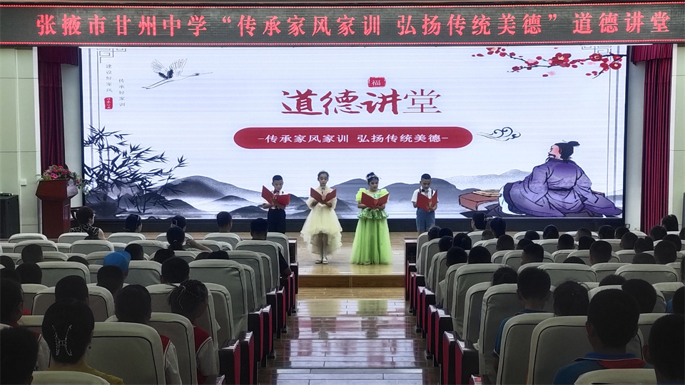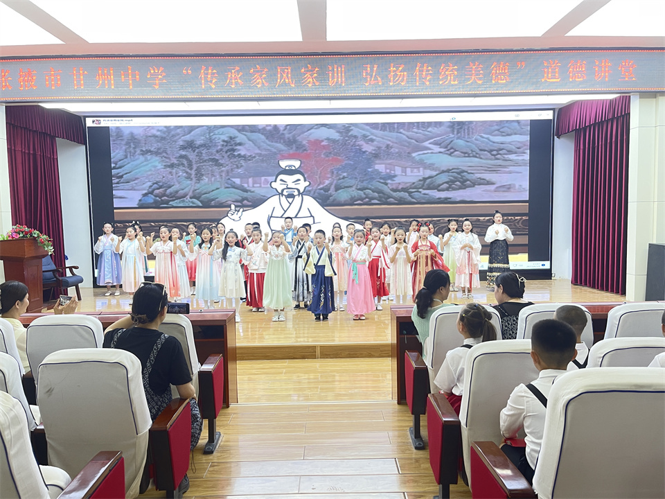 為進一步貫徹落實“三抓三促”行動要求,6月14日,甘州中學德育處、少先大隊開展了以“傳承家風家訓,弘揚傳統美德”為主題的道德講堂活動。本次活動圍繞優秀家風、家訓的傳承,通過唱一首歌曲、看一部短片、誦一首詩歌、講一個故事、談一談感受、做一番點評六個環節展開,在學生心中埋下家風家訓的種子,讓好家風與好校風相輔相成,給孩子們扣好人生“第一粒扣子”。(曹凱齊 王麗娟)