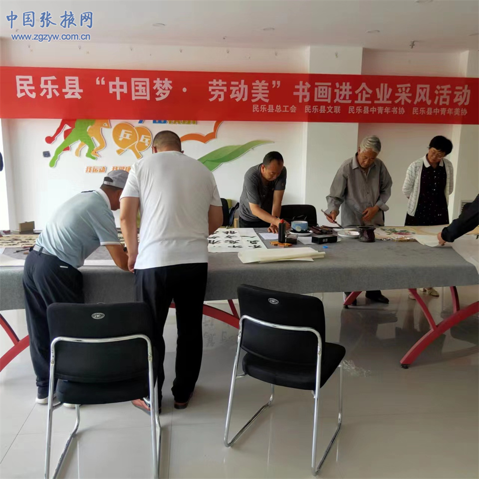 中國張掖網民樂訊 7月31日,民樂縣總工會聯合縣文聯、縣中青年書協、縣中青年美協舉辦的“中國夢勞動美”書畫藝術進企業采風活動在民樂工業園區職工服務中心拉開序幕。