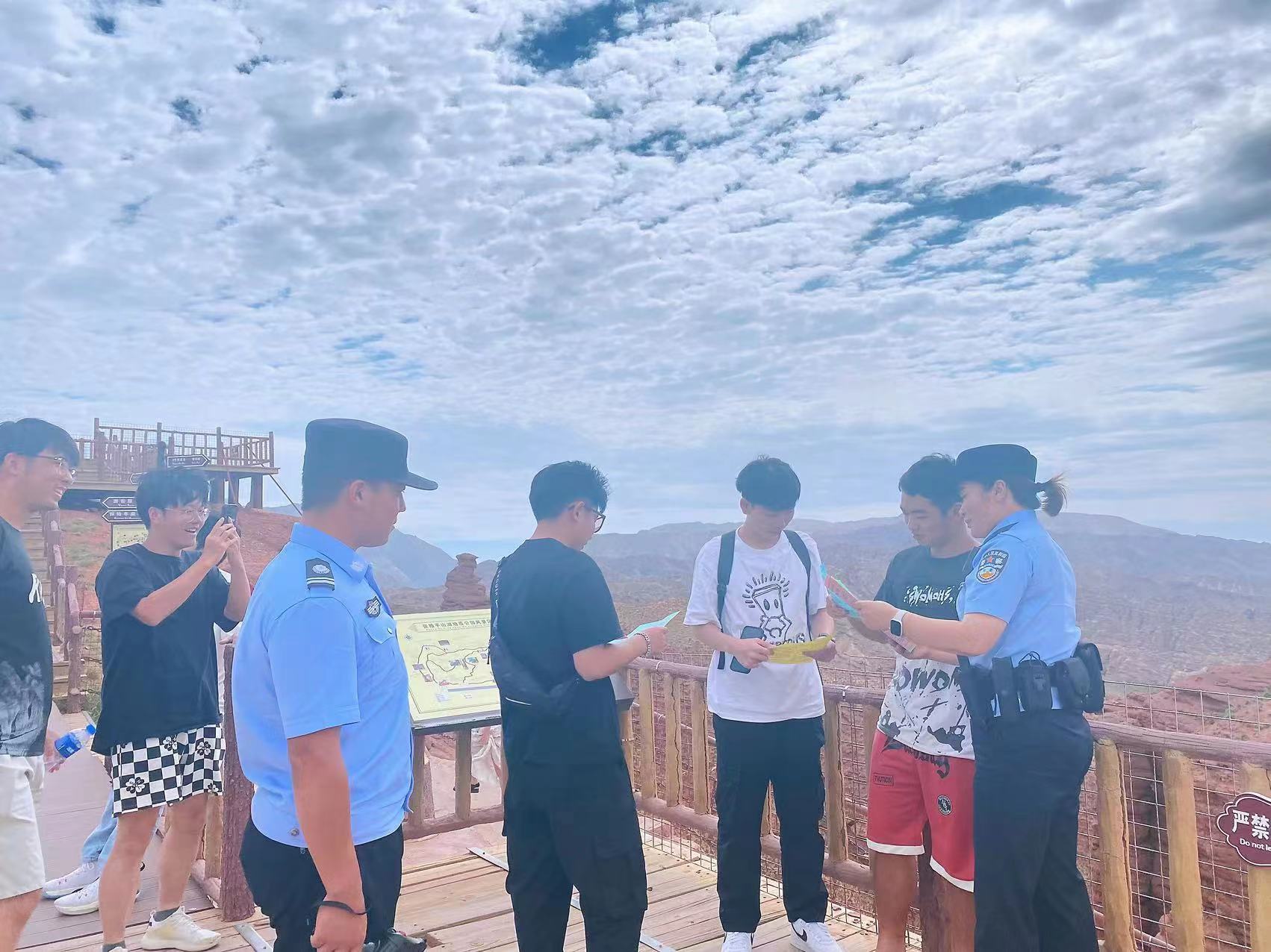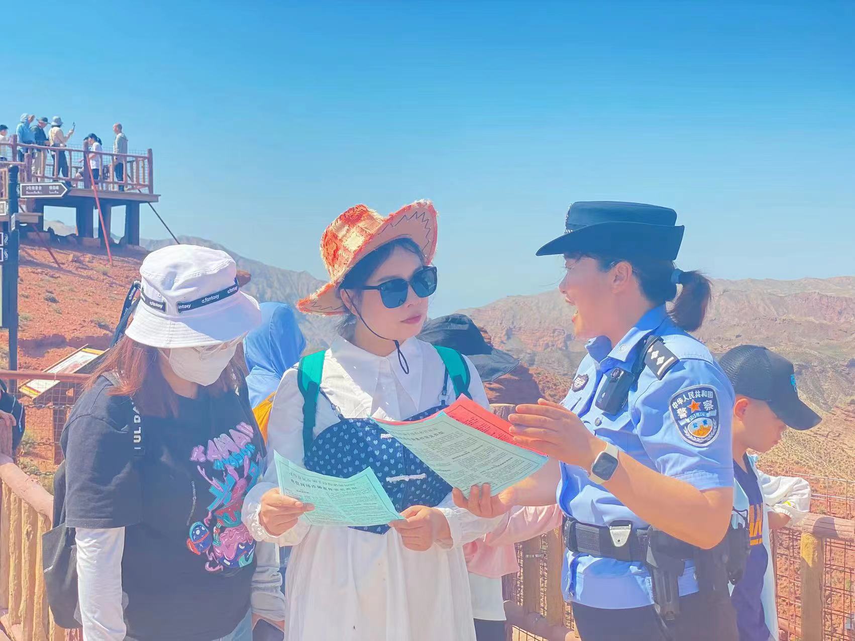 中國張掖網甘州訊 連日來,甘州區平山湖派出所大峽谷警務室立足景區實際,組織景區志愿者、工作人員、民警在維護景區秩序的同時,向游客宣傳、講解典型的“刷單返利詐騙、虛假投資理財詐騙、裸聊”等電信網絡詐騙手段,面對面答疑解惑,普及反詐宣傳知識,讓游客游玩的同時,切實保護好自己和家人的“錢袋子”。