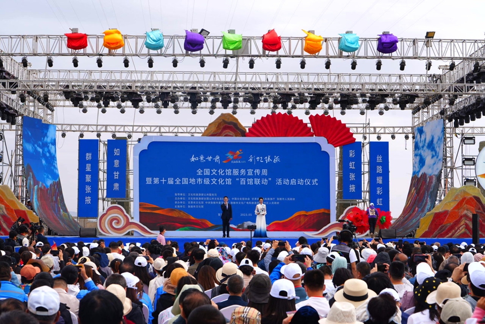 2023年5月,我市成功承辦了全國文化館服務宣傳周暨第十屆全國地市級文化館“百館聯動”。舉辦了開幕式、全國地市級文化館文藝展演、“現代公共文化服務體系與文化館站建設”專題研討活動、公共文化服務產品采購大會暨非遺美食、文創產品展、甘肅省文化館“百館聯動”等10項重點活動,共演出20多場高質量的文藝展演,舉辦了國家、省級4場書畫攝影展覽。來自全國32個省、市、自治區和新疆生產建設兵團267個文化館的3500余名嘉賓及演職人員參加了活動。國家公共文化云對本屆活動進行了全程直播、錄播,人民日報、中國文化報、光明日報、央視頻等多家國家媒體和甘肅張掖的地方媒體對本屆活動進行了持續性、跟蹤性的宣傳,為張掖拓展對外文化交流、提升地方文化發展水平、豐富群眾精神文化生活提供了重要窗口和平臺。