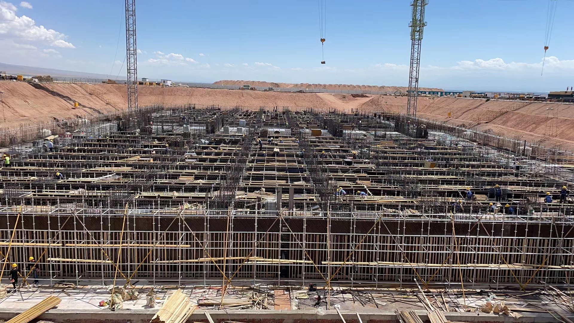 中國張掖網(wǎng)訊 張掖經(jīng)濟技術(shù)開發(fā)區(qū)中國天楹17MW/68MWh重力儲能項目現(xiàn)場塔吊林立、機聲轟鳴,工程車、運料車穿梭不止,上百名工人頂著高溫、鏖戰(zhàn)酷暑,為項目建設(shè)如期完工持續(xù)奮戰(zhàn)。