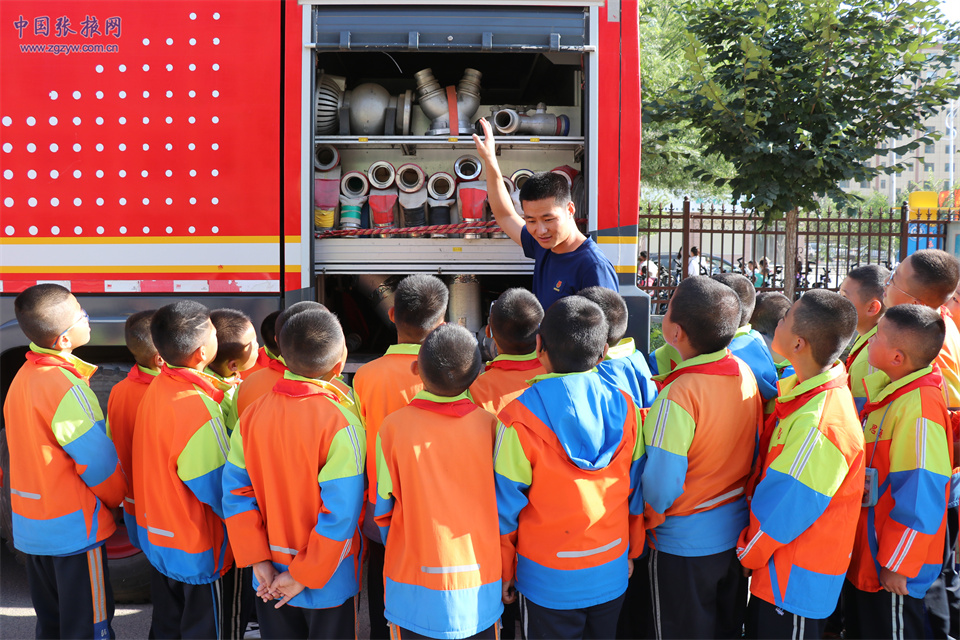 中國張掖網民樂訊 為扎實推進學校消防安全宣傳教育工作,擴大消防宣傳教育影響力和覆蓋面,增強學生消防安全意識和自防自救能力。8月28日,民樂縣消防救援大隊走進思源實驗學校,為全校師生開展“開學第一課”消防安全教育活動,護航校園開學季消防安全。