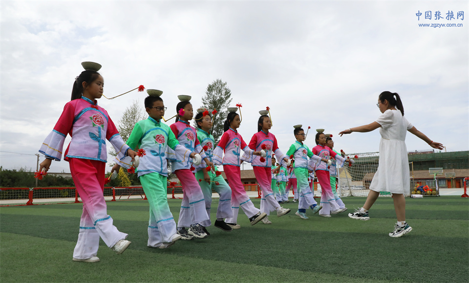 讓非遺文化進入校園,與中小學教育有機融合。近年來,民樂縣積極開展非遺進校園傳承活動,在縣域內鄉村少年宮利用學校社團、課外興趣小組、課后服務時間,針對不同學齡段的學生開展頂碗舞、四家武術等非遺傳承活動,成為學校的第二課堂。