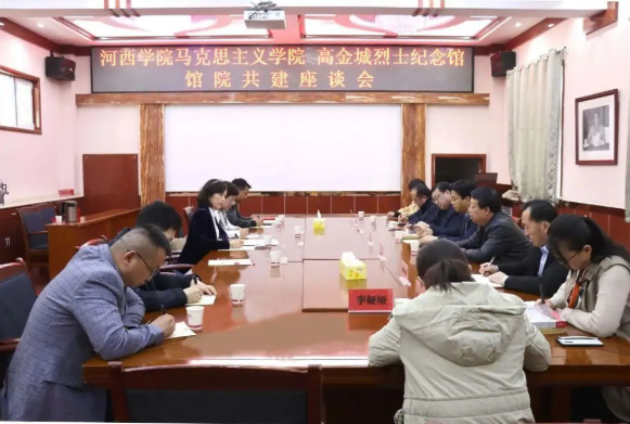 為充分發揮高金城烈士紀念館紅色文化資源在大學生理想信念教育、革命傳統教育、愛國主義教育以及研究資政等方面的作用,更好地實現高校人才培養、教學研究、服務社會、文化傳承等功能,3月23日,高金城烈士紀念館與河西學院馬克思主義學院簽訂共建“紀念館+高校”融合發展聯合體協議。西北師范大學馬克思主義學院院長史小寧、河西學院馬克思主義學院黨委書記、常務副院長藺海鯤、河西學院科技處處長杜軍林、河西學院馬克思主義學院黨委副書記王學軍、副院長顧文兵等參加館院共建座談會。高金城烈士紀念館館長曹淵主持座談會。