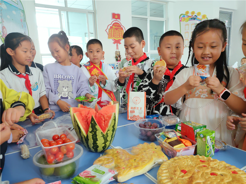 活動當日,師生們身著漢服、學習傳統禮儀文化,不僅給大家帶來了視覺上的盛宴,也烘托出了濃濃的節日氛圍。活動中,各中隊通過“中秋詩詞會”“中秋音樂會”“中秋故事會”“中秋茶話會”等不同形式,讓孩子們了解中秋節傳統文化,知曉中秋節習俗趣事,吟誦中秋節經典詩詞,講述中秋節傳說和故事。除此之外,學校還號召孩子們進行一次中秋節感恩體驗,鼓勵他們幫助長輩做家務,和家人一起操辦月餅宴,把親手制作的月餅分享給爸爸媽媽。
