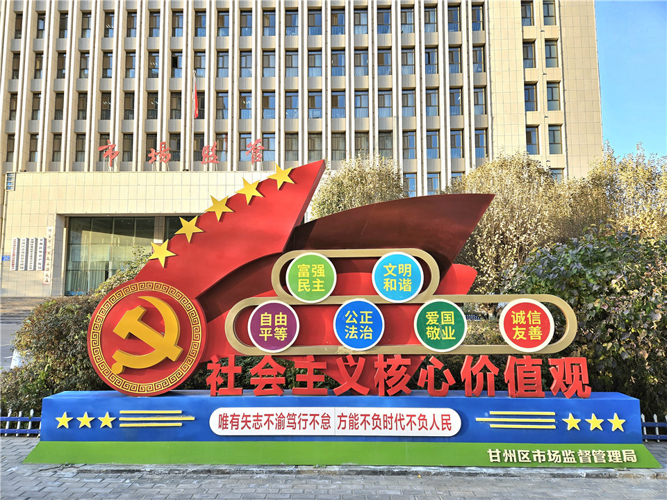 “紅+藍”城市農(nóng)村“并肩前行”全覆蓋。甘州區(qū)市場監(jiān)督管理局6個城區(qū)監(jiān)管所,7個農(nóng)村監(jiān)管片區(qū),以“同一標準、同一要求、同一目標”將“文明出行、文明餐桌、文明旅游”等文明行為宣貫踐行,用“紅色+藍色”的形式結合日常監(jiān)督檢查普及至25個文明村鎮(zhèn),文明意識播撒于餐桌景區(qū)、田間地頭。13個轄區(qū)監(jiān)管所把文明城市創(chuàng)建,文明村鎮(zhèn)建設根植于市場監(jiān)管日常工作,203名黨員干部,匯聚成磅礴市監(jiān)力量,分赴在城鎮(zhèn)、農(nóng)村,活躍于創(chuàng)建一線。