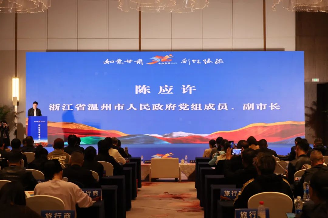 中國張掖網(wǎng)訊 11月13日,彩虹張掖文化旅游宣傳推介會(huì)在溫州舉行。溫州市人民政府黨組成員、副市長陳應(yīng)許,張掖市人民政府黨組成員、副市長安維國出席會(huì)議并致辭。來自兩地的文化和旅游部門、旅行社協(xié)會(huì)、機(jī)場、重點(diǎn)文旅企業(yè)負(fù)責(zé)人,新聞媒體記者等200余人齊聚一堂,共同感受這場文旅盛宴。