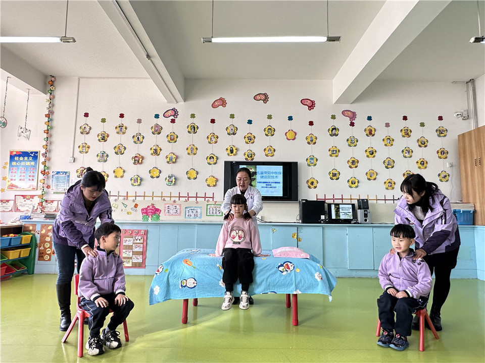 大夫運用推、揉、捏等穴位按摩手法,讓大家了解到了中醫的獨特魅力,并學到了一些實用的中醫養生知識,增強了幼兒的自我保健意識,同時使教師多方面掌握了科學育兒知識,促進幼兒“未病先防”,健康成長。