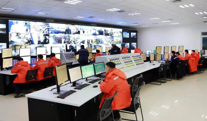 走進位于南華工業園的張掖市晉昌源煤業有限公司廠區,機械轟鳴,加氫項目生產正酣。“2號爐人手不夠,先把中班的人調過去?!薄笆盏剑盏剑R上下去?!薄诠局锌厥依?,10多名監控人員全神貫注操作電腦,認真關注設備運行情況,對講機里聲音不斷,隨時呼叫調整調度。正中間大屏幕上顯示各個生產線現場、技術參數、綜合采集、設備運行等情況。