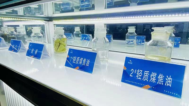 “大屏幕上顯示的是生產現場重要設備、重要裝置的監控畫面,分為四個作業區,左前方這4臺電腦顯示的是空分裝置,該裝置作用是將空氣中的氮所和氧氣分開;右前方6臺電腦顯示的是水煤槳氣化裝置,主要作用是把原料煤和水添加劑在純氧助燃條件下生成煤氣;中間是PSA變壓吸附提氫裝置,作用是將上游工序煤氣通過變壓吸附提取氫氣(99.99%)通過管線輸送至下游工序。下方是焦油加氫裝置,該裝置又分為預處理裝置,反應、壓縮和分餾裝置,預處理裝置作用為通過減壓分離將原料中輕重組分進行分離,頂部為3#輕質煤焦油、中部為中段油、底部為重組分瀝青。反應、壓縮、分餾裝置的作用為將中段油和氫氣在一定的溫度壓力條件下進行精制反應、裂化反應,生成1#輕質煤焦油、2#輕質煤焦油產品?!睍x昌源煤業有限公司副總工程師劉鵬介紹。