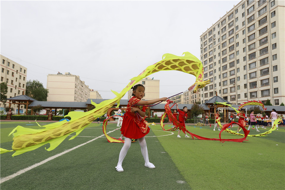 中國(guó)張掖網(wǎng)高臺(tái)訊 近年來(lái),高臺(tái)縣第二幼兒園著眼挖掘地域特色文化元素,注重傳承中華優(yōu)秀文化基因,結(jié)合節(jié)慶節(jié)點(diǎn)組織開(kāi)展豐富多彩的游戲活動(dòng),定期邀請(qǐng)專業(yè)戲曲演員和民間藝人為幼兒進(jìn)行地方劇種秦腔、舞龍的表演指導(dǎo)。飛舞的彩龍、一板一眼的表演、二十四節(jié)氣傳統(tǒng)活動(dòng),展現(xiàn)出孩子們對(duì)中華優(yōu)秀傳統(tǒng)文化的喜愛(ài),更為幼兒戶外游戲活動(dòng)增添了色彩,讓孩子們?cè)诟惺苤腥A優(yōu)秀傳統(tǒng)文化魅力的同時(shí)快樂(lè)成長(zhǎng)。