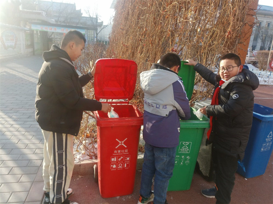 在老師的帶領下,同學們在校園周邊撿拾垃圾。活動中同學們爭先恐后、不怕臟、不怕累,踐行“撿拾一片垃圾,清潔一方土地,傳播一份文明”的行動,將文明之花播撒于校園周邊。