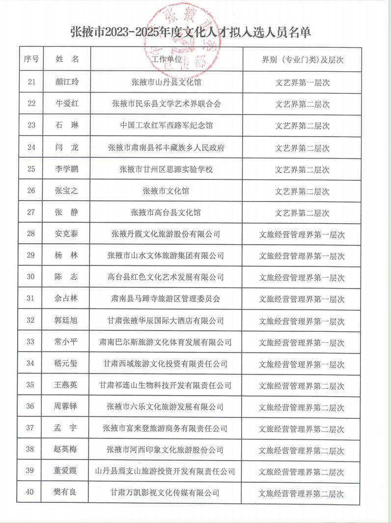 附件:張掖市2023-2025年度文化人才擬入選人員名單