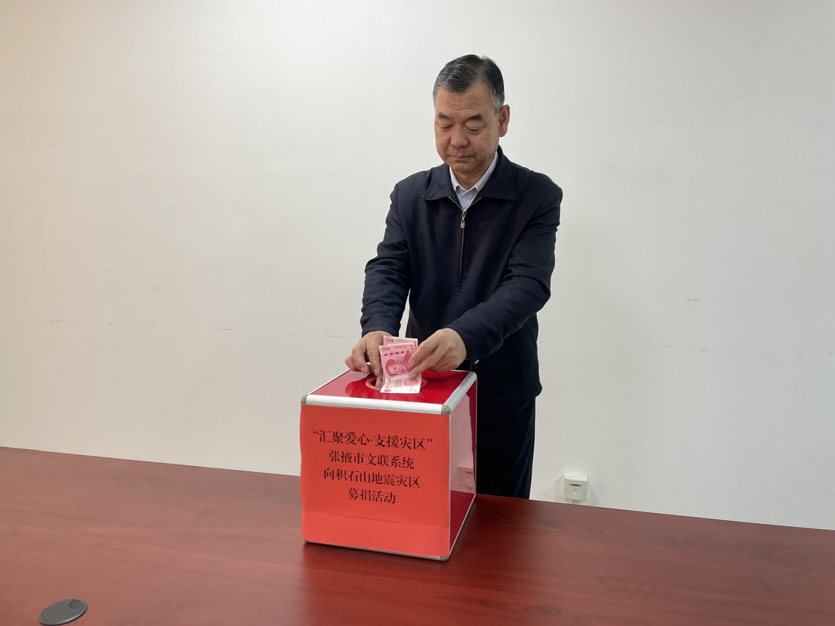 中國張掖網訊 積石山縣6.2級地震牽動著眾人的心。一方有難八方支援,張掖市文聯心系災區,緊急動員,開展了“匯聚愛心·支援災區”募捐活動,得到全市廣大文藝工作者積極響應。