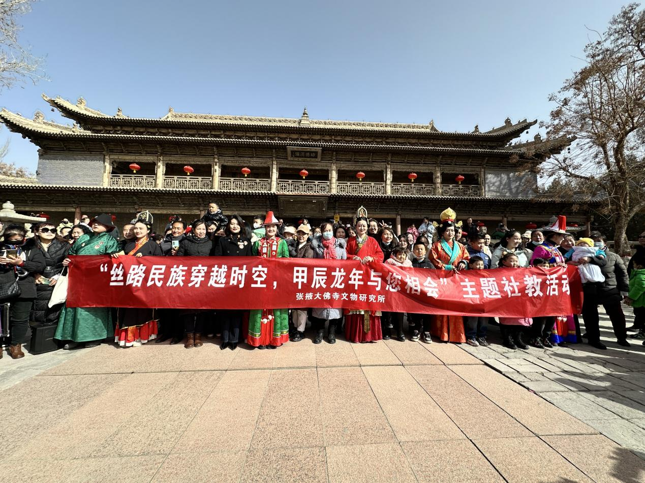 中國張掖網訊 近日,張掖大佛寺文物研究所開展的“絲路民族穿越時空,甲辰龍年與您相會”主題社教活動,當天開展8場次,累計為現場8100余人觀眾和線上2000余人觀眾,進行了以絲綢之路歷史文化為主要內容的社教活動,有效激發了參與者的歷史自信和文化自信。