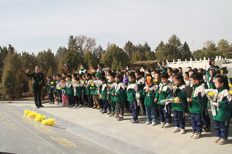 3月25日上午,在莊嚴(yán)肅穆的氣氛下,百余名幼兒手持鮮花,在烈士公墓前致敬默哀,隨后向革命先烈敬獻(xiàn)鮮花。