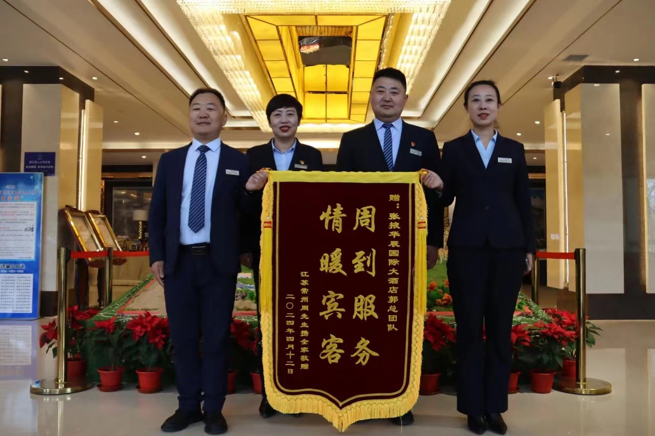 中國張掖網(wǎng)訊 日前,張掖華辰國際大酒店收到了一面來自江蘇常州的周先生送的錦旗。周先生對酒店工作人員熱心幫助、貼心服務(wù)、細(xì)心照顧表示誠摯感謝和高度贊揚(yáng)。