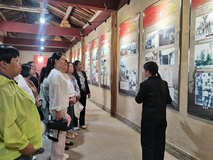 活動在誦讀《傳承紅色家風——朱德致前妻陳玉珍》的紅色家書中拉開了序幕。“在這里,沒有戰斗員和勤雜人員之分,沒有男同志和女同志之分,不僅輕傷員,重傷員也是至死不下火線,有些甚至自己拉響手榴彈與敵人同歸于盡……”在汪家墩碉堡,講解員杜亭慷慨激昂地講述了紅西路軍堅守汪家墩的故事;在紅西路軍指揮部,講解員張雅婷帶領大家一起回顧“三進三出倪家營子”那一段段驚心動魄的戰斗,深入淺出地介紹展現了紅西路軍及婦女獨立團巾幗不讓須眉的英雄氣概,共同譜寫薪火相傳的優良家風。