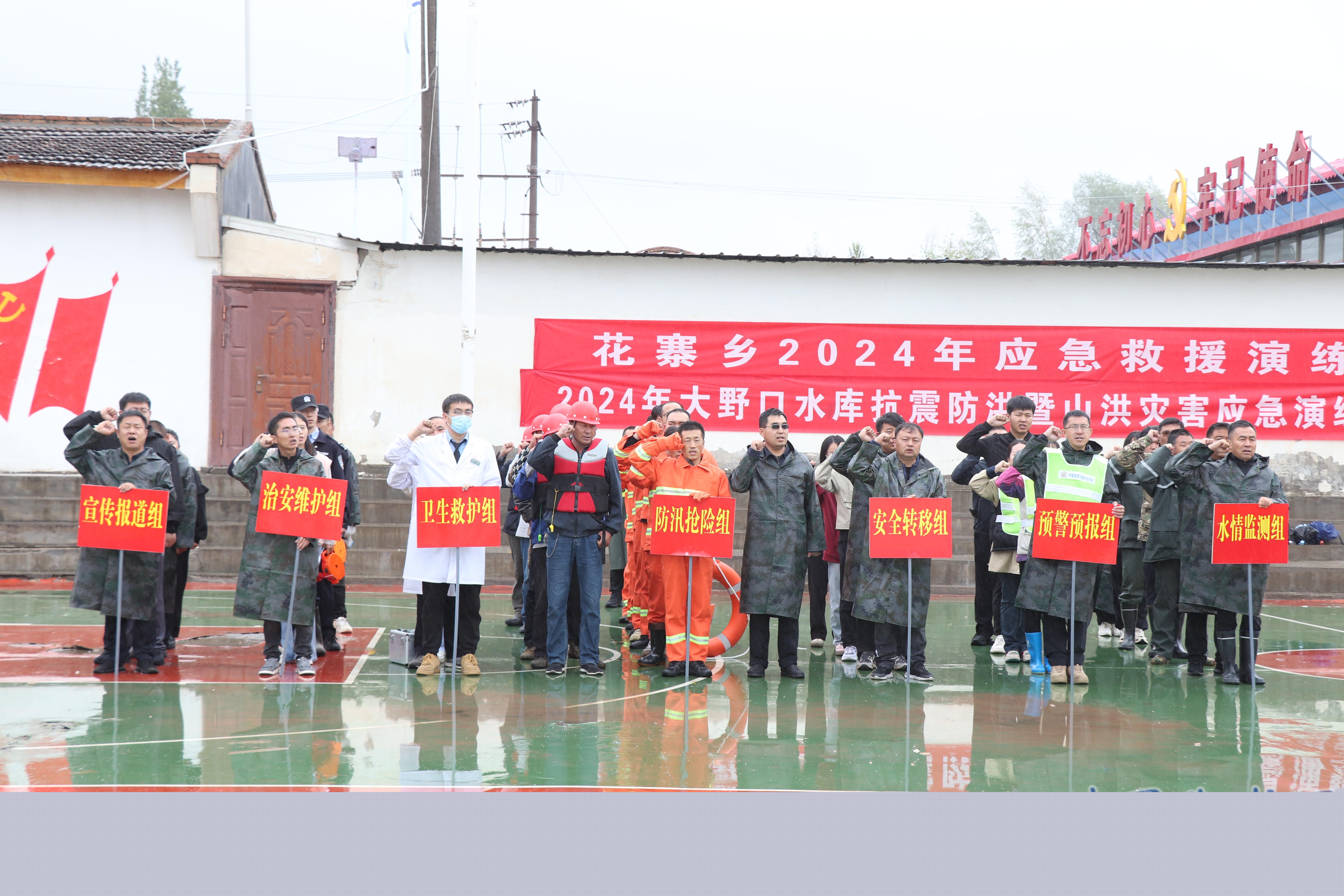 此次演練將花寨村設為山洪災害防御演練區,共設置了險情發生、隊伍點驗、群眾轉移、秩序維護、防汛搶險、衛生救護、解除警報7個演練場景和水情監測、預警預報、轉移安置、防汛搶險救援、醫療救護、治安維護、交通疏導、物資保障、信息保障9個專業應急小組,堅持貼近實戰原則,模擬連續強降雨造成大野口流域山洪暴發,部分地段發生重大險情,村民生命、房屋、農田、道路等受到嚴重威脅。