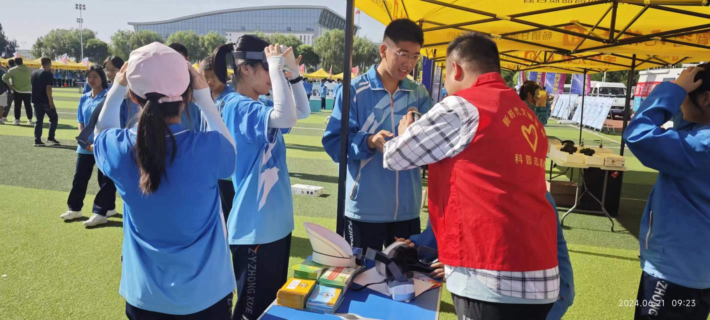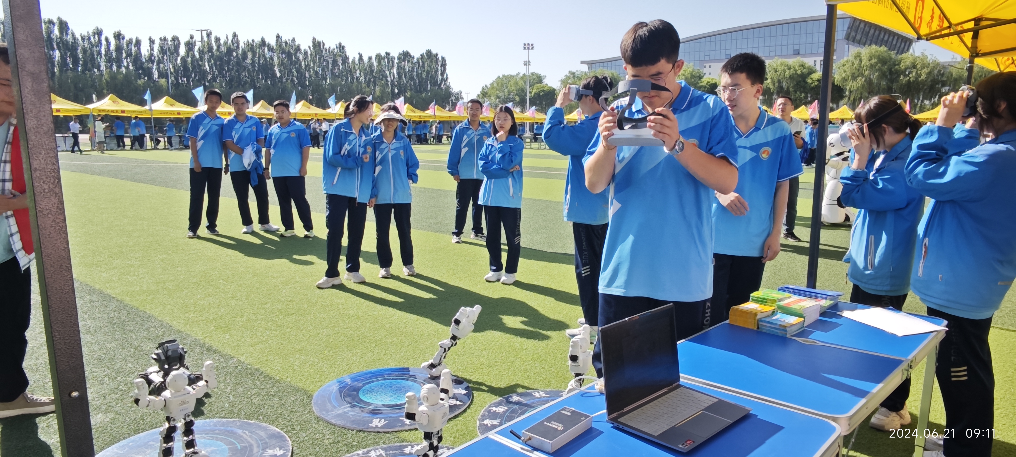 活動(dòng)現(xiàn)場(chǎng),科普志愿者為同學(xué)們展示了精彩的機(jī)器人舞蹈表演、VR互動(dòng)體驗(yàn)、科學(xué)家精神展牌等,吸引了全校師生駐足觀看,科普志愿者生動(dòng)的講解和演示,向同學(xué)們介紹了各種科技展品的原理和應(yīng)用。VR眼鏡體驗(yàn)也讓同學(xué)們沉浸其中,大家戴上VR眼鏡后,仿佛瞬間進(jìn)入了一個(gè)奇幻的虛擬世界,盡情感受著科技帶來(lái)的奇妙魅力和無(wú)限可能。通過(guò)體驗(yàn)讓同學(xué)們對(duì)人工智能和機(jī)器人技術(shù)有了更為直觀和深入的認(rèn)知,激發(fā)了大家對(duì)科技探索的濃厚興趣。