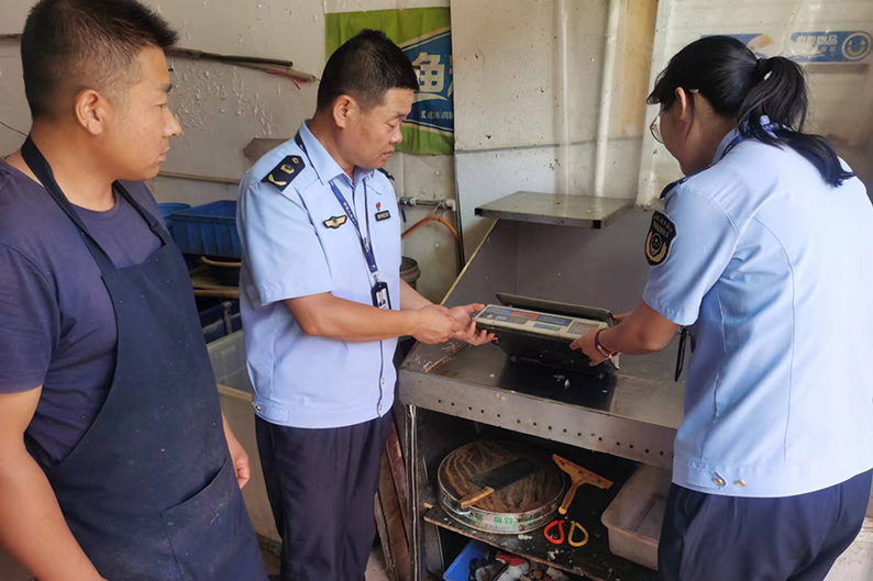 行動(dòng)中,該所堅(jiān)決打擊“鬼秤”“騙秤”“缺斤短兩”等計(jì)量違法行為,通過(guò)為期3月的綜合整治,為消費(fèi)者打造安全、放心、滿意的消費(fèi)環(huán)境。自整治工作開(kāi)展以來(lái),執(zhí)法人員現(xiàn)場(chǎng)識(shí)破各種“鬼秤”花招。該所在檢查轄區(qū)水產(chǎn)店時(shí)發(fā)現(xiàn)1臺(tái)型號(hào)為ACS-30的電子計(jì)價(jià)秤(制造日期2018.6)“暗藏貓膩”,現(xiàn)場(chǎng)使用1千克砝碼對(duì)該電子計(jì)價(jià)秤進(jìn)行復(fù)查核對(duì),核對(duì)結(jié)果顯示1.03千克,在核稱(chēng)砝碼1千克不變的情況下,分別按下單價(jià)鍵1至7時(shí),分別顯示稱(chēng)重讀數(shù)1.13、1.24、1.34、1.45、1.55、1.65、1.03千克。經(jīng)調(diào)查該商家通過(guò)提前設(shè)置密碼的方式,按電子秤上的不同按鍵能使物體的量值或總價(jià)有不同程度的提升,檢查人員現(xiàn)場(chǎng)沒(méi)收了這臺(tái)“作弊秤”,并對(duì)當(dāng)事人的違法行為進(jìn)行立案調(diào)查。至目前,該所檢查集貿(mào)市場(chǎng)2家、商超食雜店等69家;立案查處電子計(jì)價(jià)秤作弊案件1起,查處使用未經(jīng)檢定或超期未檢計(jì)量器具5起,依法停用沒(méi)收不合格電子計(jì)價(jià)秤4臺(tái),督促經(jīng)營(yíng)者及時(shí)整改,引導(dǎo)經(jīng)營(yíng)者加強(qiáng)自律、誠(chéng)信經(jīng)營(yíng),維護(hù)公平公正市場(chǎng)環(huán)境。(王雅珍)