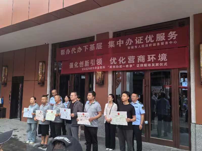 中國張掖網訊 為進一步優化營商環境,緩解企業群眾辦證難、辦證貴的現象,市政務大廳幫辦代辦團隊駐點各市場監管所,定期開展政務服務幫辦代辦下基層活動,為廣大市場經營主體免費辦理各類許可證照,助力全市社會經濟高質量發展。8月2日,張掖市人民政府政務服務中心聯合甘州區東街街道市場監管所為辦事企業群眾開展免費幫辦代辦、集中辦證發證政務服務活動。