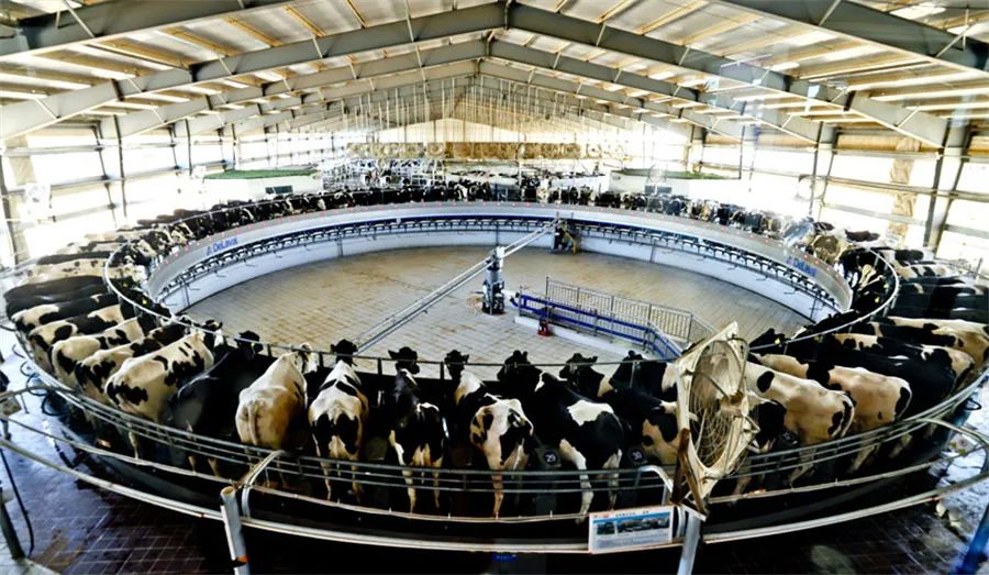 每天早上7點,地處高臺縣合黎鎮五四村北灘的甘肅燕塘傳祁牧業有限公司擠奶大廳一派忙碌,全自動擠奶轉盤不停運轉,一頭頭配戴“項圈”,耳釘標識牌的奶牛自覺進入轉盤,經過擠奶員前藥浴、擠三把奶、擦拭、上杯、巡杯、后藥浴系列操作后開始產奶。“9-10月是產犢高峰期,也是奶牛產奶較多的時間段,一天24小時4班次擠奶,日產鮮奶105噸。”甘肅燕塘傳祁牧業有限公司場長許建鵬介紹,公司引進瑞典進口的利拉伐80位PR3100轉臺和目前最先進的帝波羅軟件,可及時監測到滑杯、漏氣、脫杯等情況,其更大、更快、更強、更智能的優化設計,為牧場高科技、高效率、數字化生產貢獻了“核心”力量。