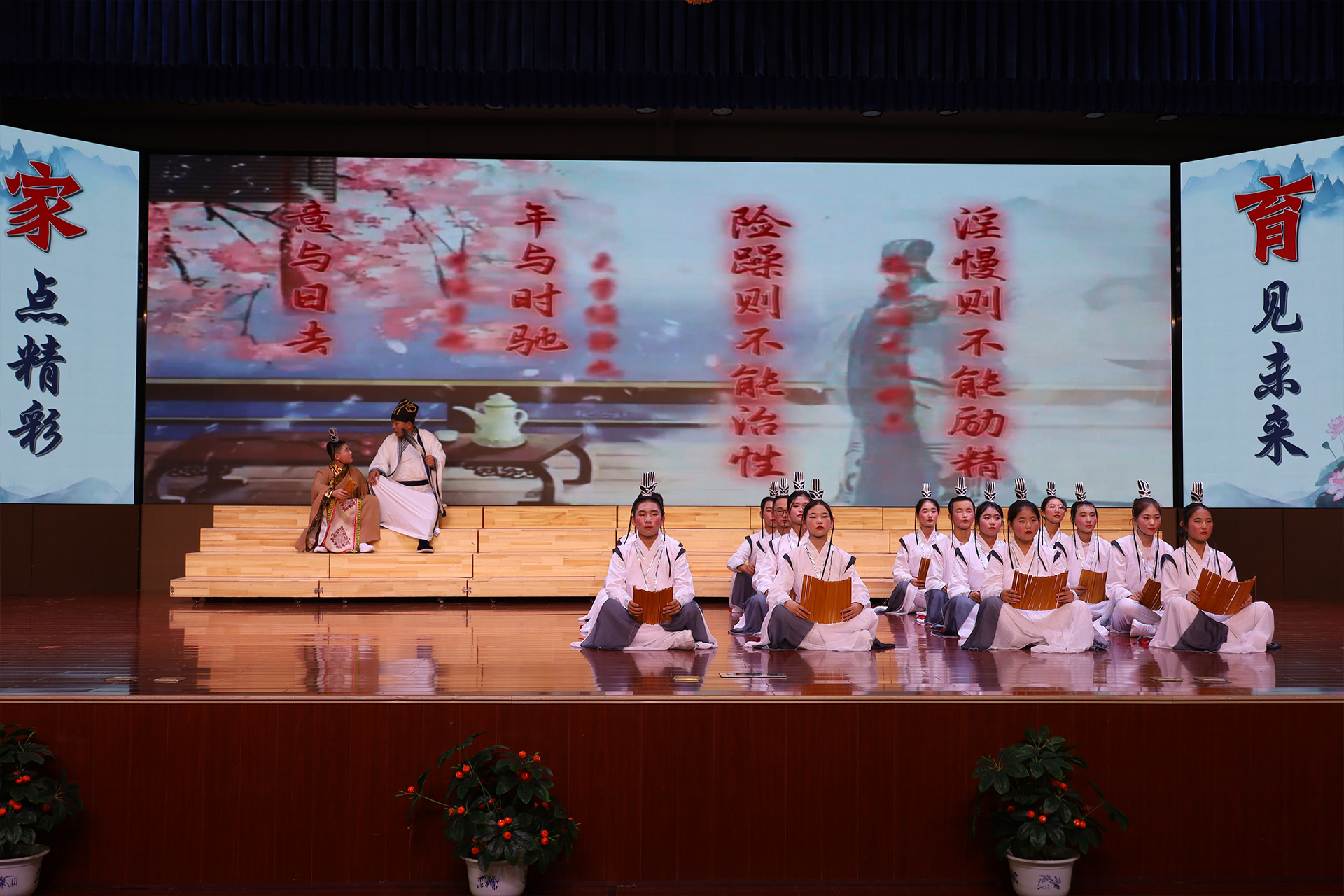 在學校教育成果展示觀摩之后,以“做一場報告、看一部短片、誦一段經典、講一個育人故事、同唱一首歌、看一部心理短劇、發一份倡議、展一段才藝、談一點感悟”為內容的“九個一活動”依次上演。其中,經典誦讀《誡子書》,讓與會人員從誦讀中感受經典的魅力;心理短劇《別人家的孩子》讓家長明白有效陪伴才是最好的教育;舞蹈《魚水情深》充分展示了家校共育成果。