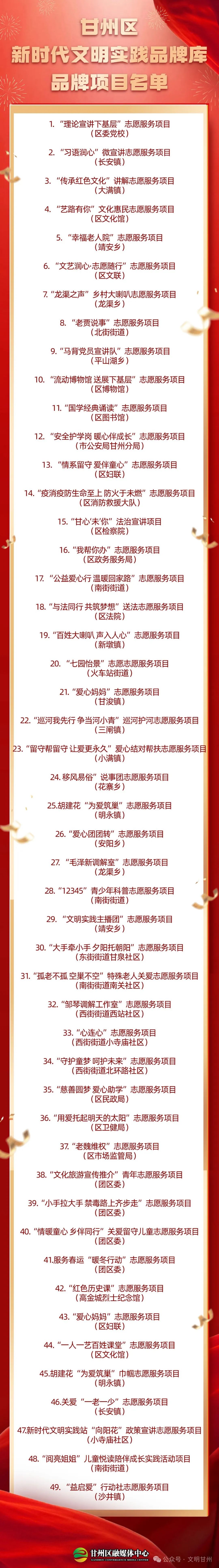 甘州區新時代文明實踐品牌庫品牌項目名單