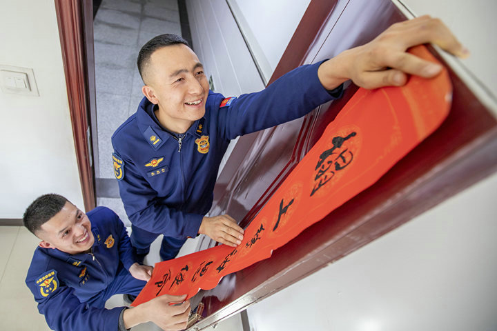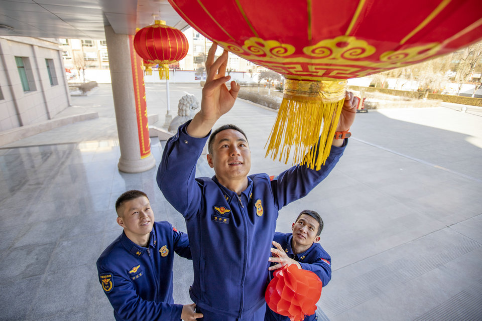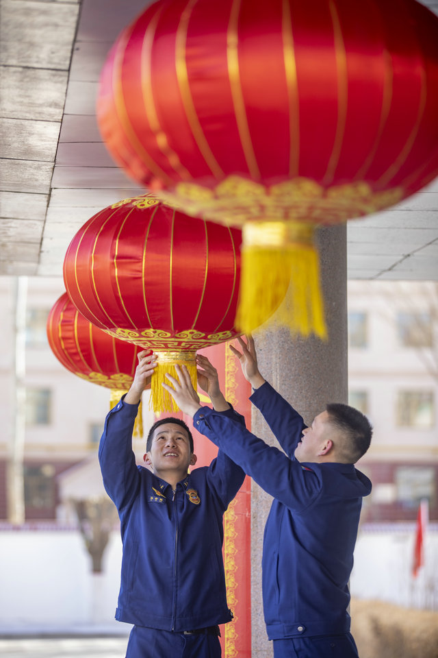 中國(guó)張掖網(wǎng)訊 1月27日,甘肅省森林消防總隊(duì)張掖支隊(duì)的隊(duì)員們?cè)跔I(yíng)區(qū)貼春聯(lián)、懸掛燈籠,營(yíng)造濃濃的年味。春節(jié)期間,這些消防隊(duì)員們放棄和家人團(tuán)聚的美好時(shí)光,堅(jiān)守在自己崗位,守護(hù)一方平安。
