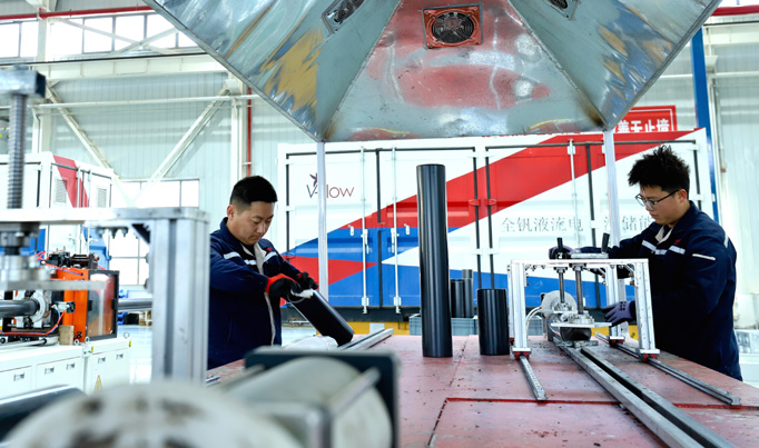 在甘肅偉力得儲能電池有限公司集成裝配車間,工作人員忙著為下一個項目準備材料。“先粘接管路,制作盤管盒,1套儲能系統需要粘接16節長度不相等的PVC管。經過盤管盒制作、模塊組裝、模塊進箱、管路安裝等10幾道工序,完成1套儲能系統,大概需要12個小時。”工作人員鄒成紅告訴記者,該公司生產的全釩液流儲能系統主要用于電源側、電網側、大型客戶端,銷往新疆、內蒙古、陜西、寧夏等地。