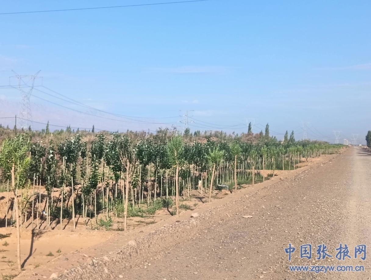 中國張掖網臨澤訊 走進臨澤縣蓼泉鎮南沙窩植樹造林點,滿眼新綠,一排排楊樹迎風挺立,展露蓬勃生機。