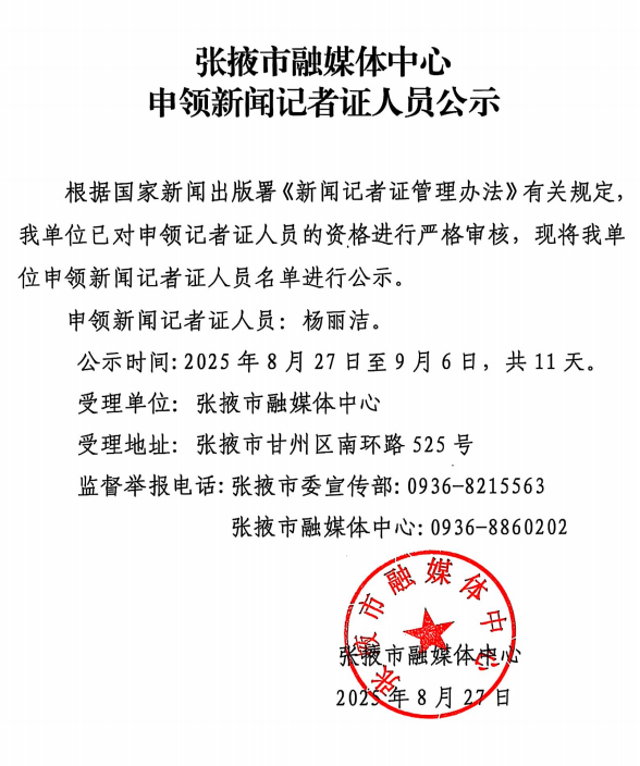 張掖市融媒體中心申領新聞記者證人員公示