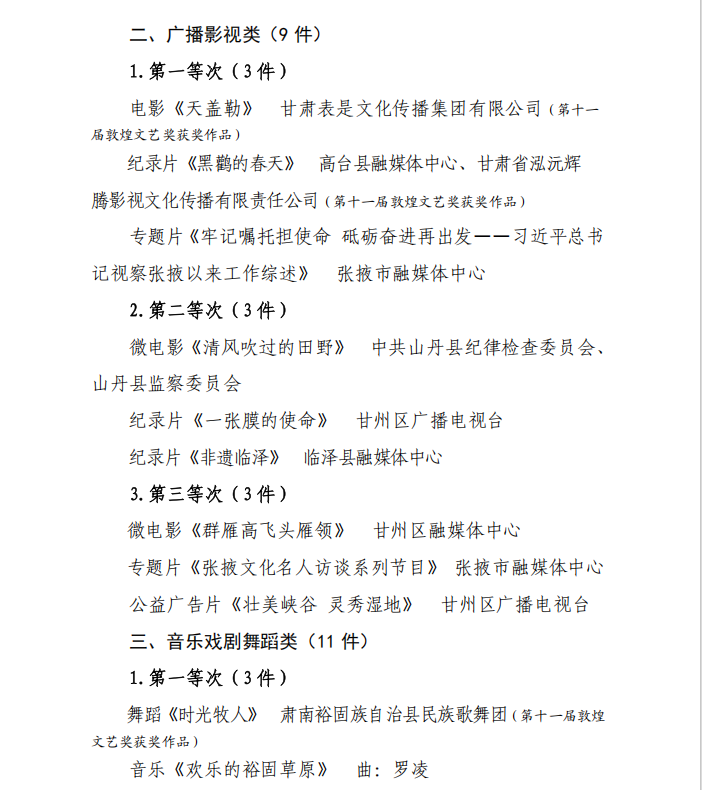 關于對第七屆金張掖文藝精品作品進行公示的公告